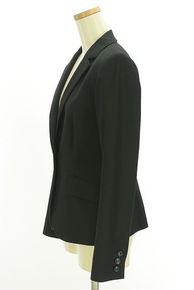 | 説明 | 黒無地のシンプルなテーラードジャケット。細身で女性らしく、美しいシルエットが魅力的。裏地はチェック柄生地が使われ、袖口は折り返すとアクセントに。着脱前ボタン×1。肩パット入り。袖口内(チェック柄)軽い汚れ。両サイドフラップポケット。 |