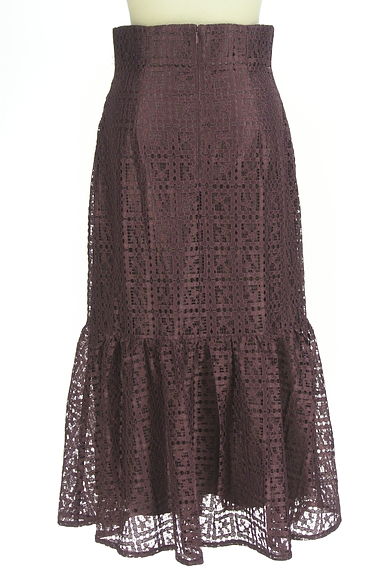 説明花柄×格子柄の透かしレースが華やかなロングスカート。ダークパープルの落ち着いたカラーに光沢糸の刺繍レースが華やぎをプラスします。後ろファスナータイプ。