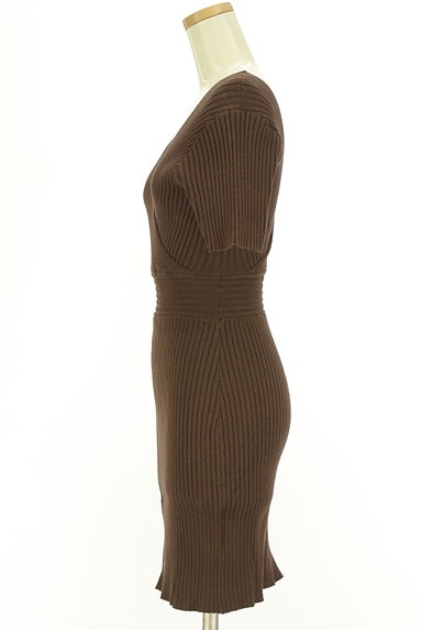 説明ぴったりボディにフィットし女性らしさを引き立てる焦げ茶色のリブニットミニワンピース。カシュクールの上身頃は深いVネックでセクシーなポイントに。柔らかなリブニットで着心地もGOOD!プルオーバータイプ。矢印部分 軽い汚れ。