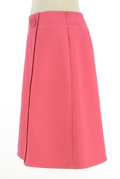 説明コーデのアクセントになるビビットピンクがポイントのスカート。ラップスカート風に見せかけたダミーボタンやカッティングが◎。美脚効果が期待出来る台形シルエットが嬉しい一枚です。画像矢印部分 シワ。左側ファスナー