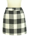大き目の白黒ブロックチェックが目を惹くミニスカート。裏地はショートパンツ仕様。後ろファスナー仕様。フロントダミーボタン。全体 軽い毛玉。 |